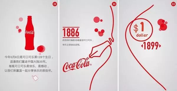 整个可口可乐的时间轴是随着用户向上滑动页面“绘制”出来