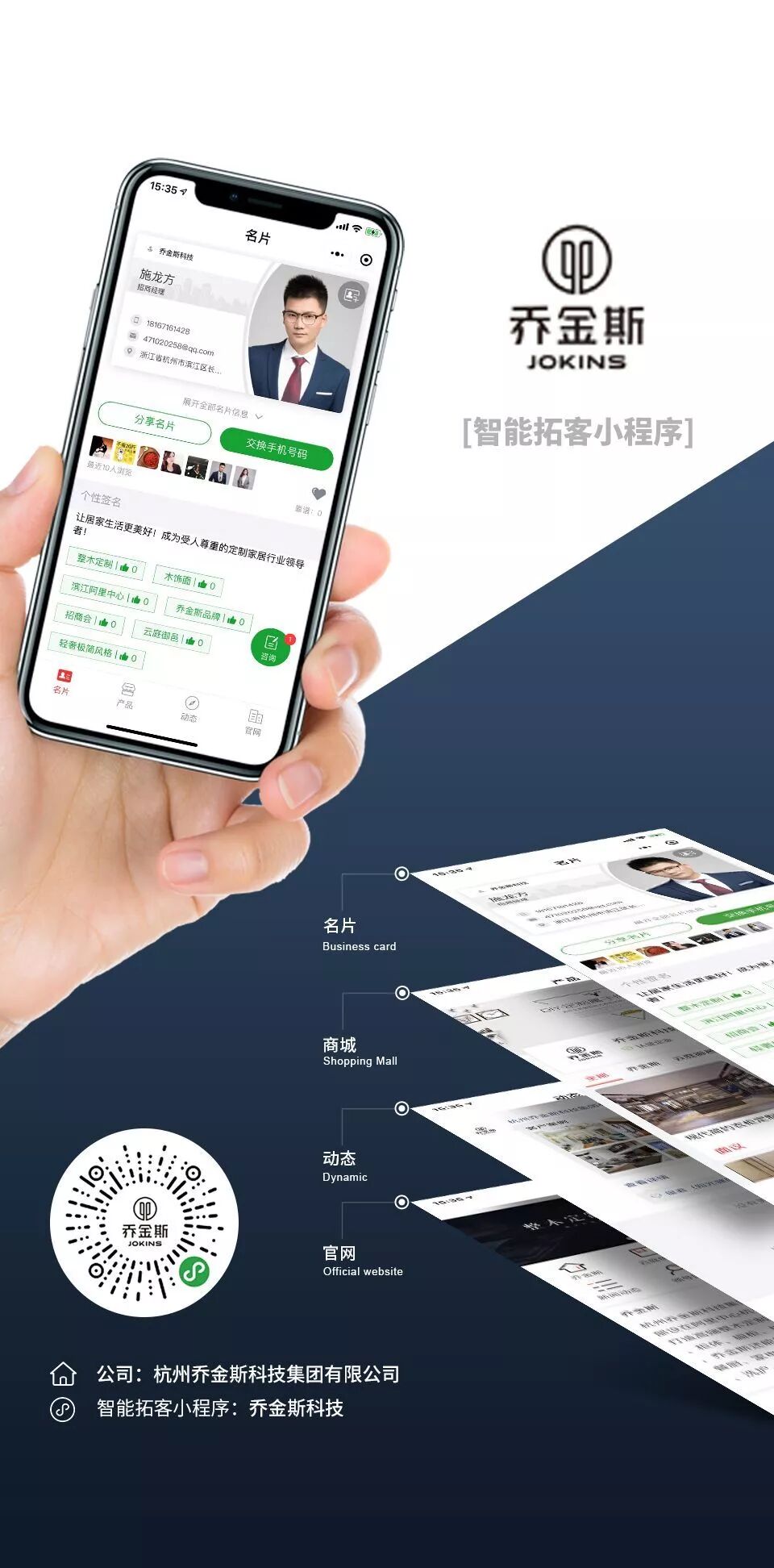 恭喜【杭州乔金斯科技集团有限公司】开通智能拓客小程序,利用个人名片、商城、官网、动态等实现微信拓客、跟踪、管理!