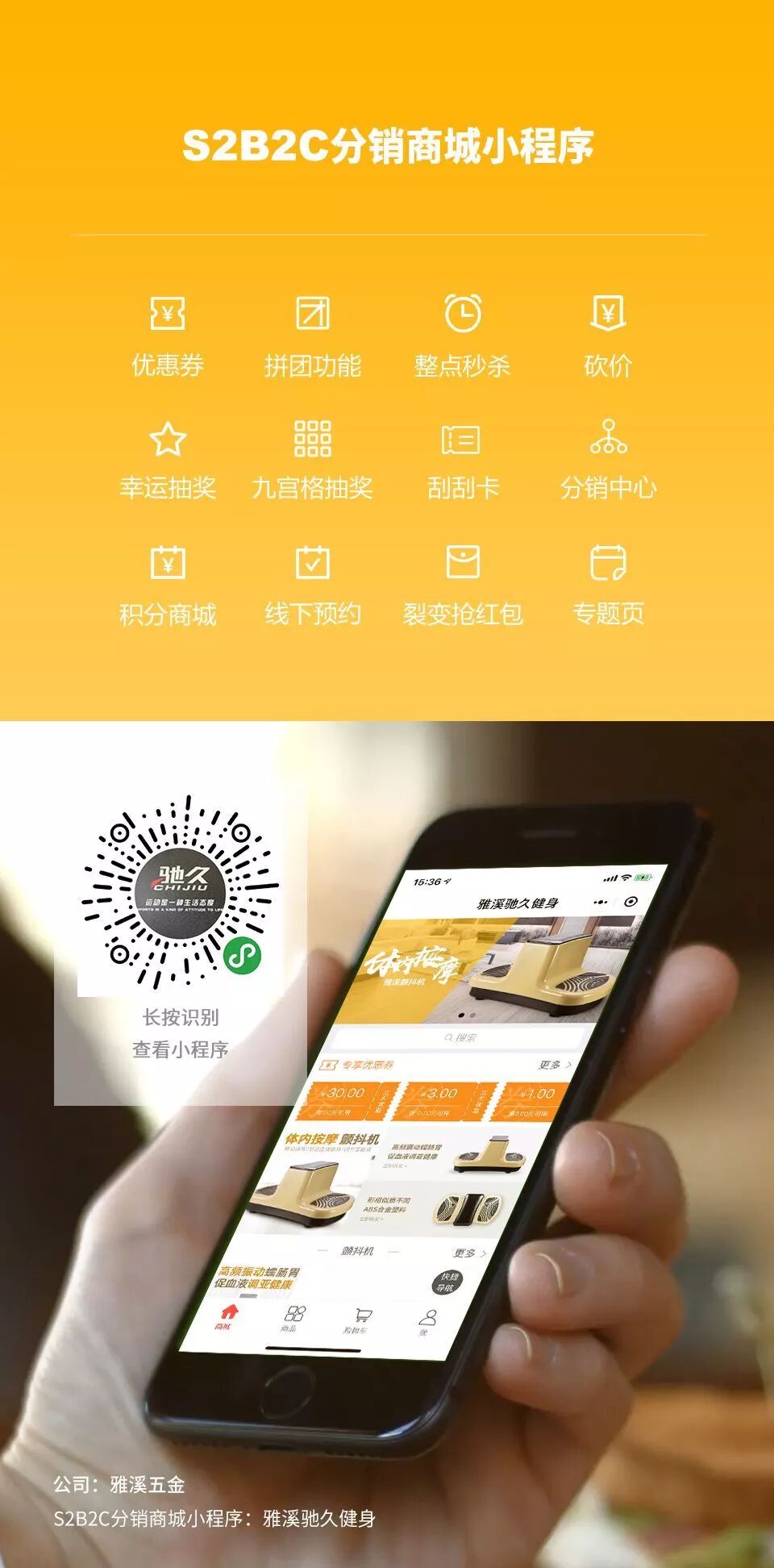 恭喜【雅溪驰久健身】开通S2B2C分销商城小程序,实现裂变营销!
