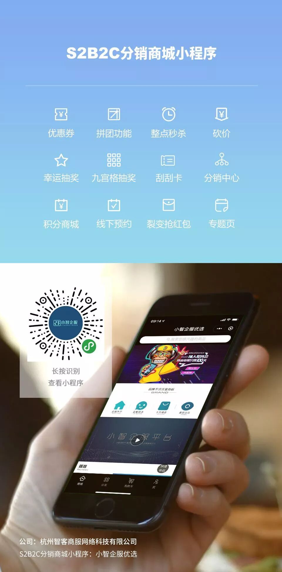 恭喜【杭州智客商服网络科技有限公司】开通S2B2C分销商城小程序,实现裂变营销!