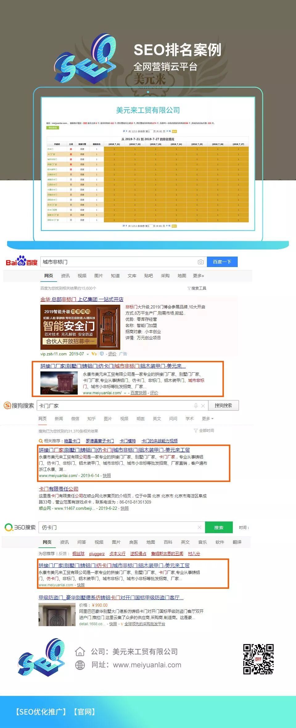 恭喜【美元来工贸有限公司】开通全网营销云,关键词霸屏百度第1页;利用营销型网站、手机网站、小程序、公众号等实现全网营销!