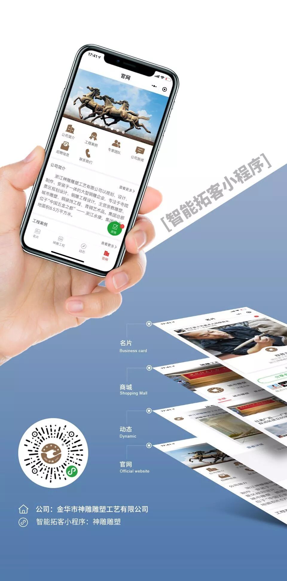 恭喜【金华市神雕雕塑工艺有限公司】开通智能拓客小程序,利用个人名片、商城、官网、动态等实现微信拓客、跟踪、管理!