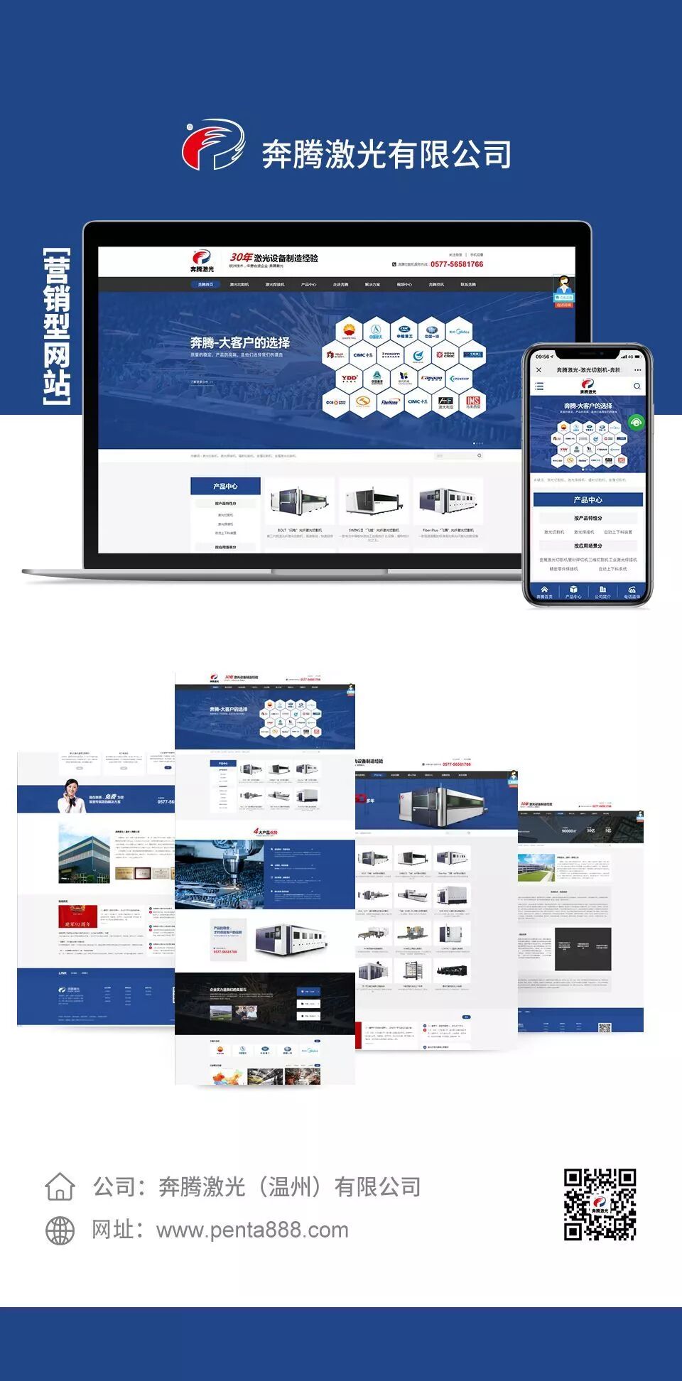 恭喜【奔腾激光(温州)有限公司】开通全网营销云,利用营销型网站、手机网站、微网站、小程序、公众号实现全网营销!