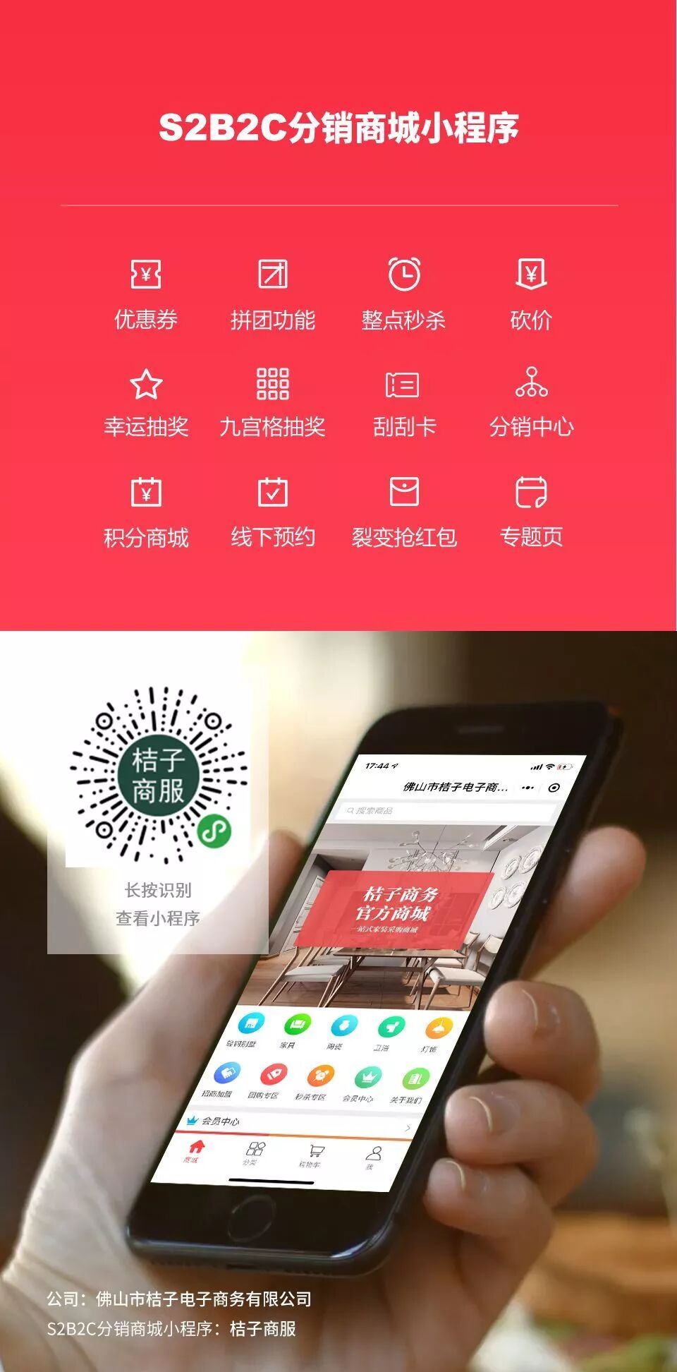 恭喜【佛山市桔子电子商务有限公司】开通S2B2C分销商城小程序,实现裂变营销!