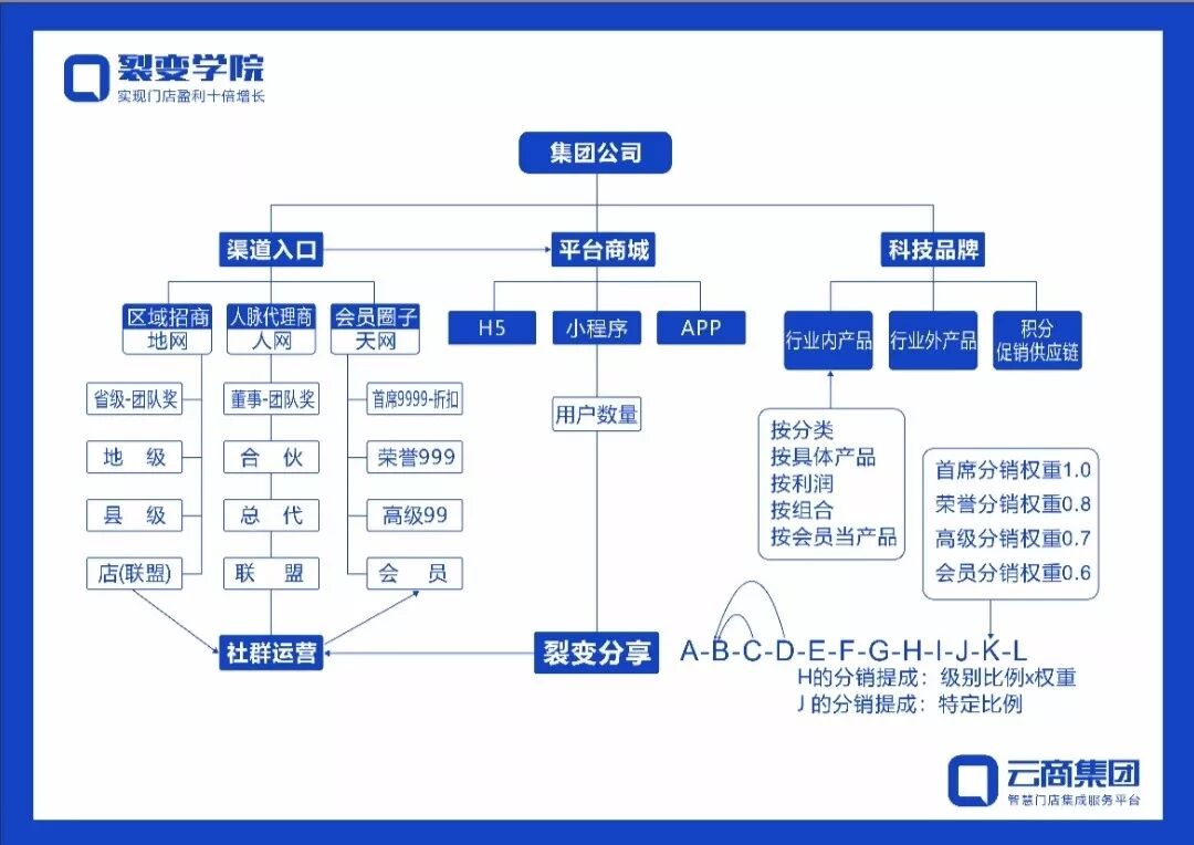【裂变商城】基于公众号、H5、商城构建社交新零售平台,前端打通天网、地网、人网,以三网合一、七网融合为渠道,以社群为入口,通过社群先聚集人,打造一个集学习、培训、交流、购物为一体的平台,再通过用户传播分享转介绍,把商城开到人群中,轻松实现利润增长10倍。