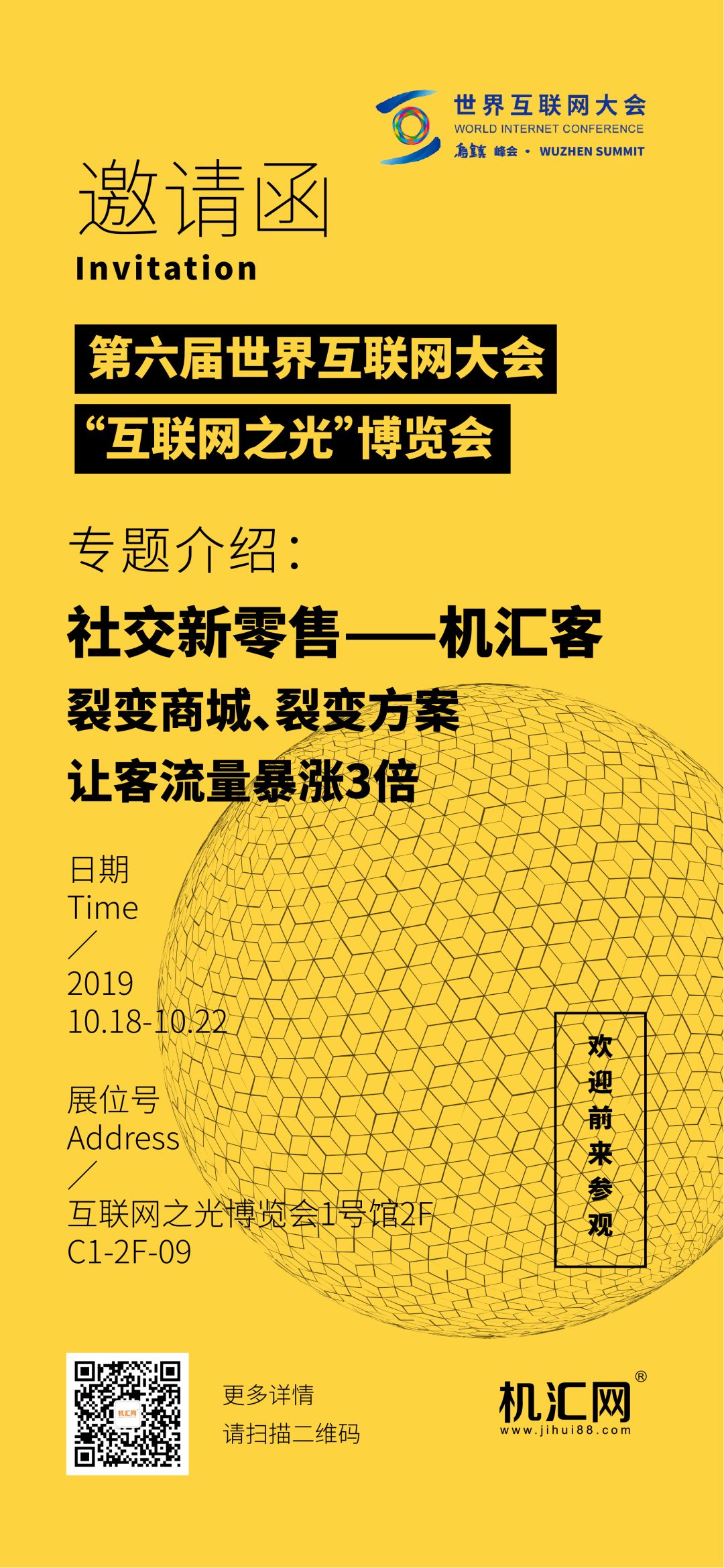 10月18日-22日,以智能互联 开放合作一一携手共建网络空间命运共同体为主题的第六届世界互联网大会在乌镇隆重召开, 会议吸引了近600家全球企业参展, 包括阿里巴巴、华为、腾讯,中国移动,用友,SAP 等。大会设置20场分论坛,人工智能、5G、产业数字化、金融科技、工业互联网等议题在各分论坛上精彩呈现,数百个创新成果在大会发布,世界互联网大会已经成为全球互联网界的盛会。机汇网参展并举行了产品发布会!