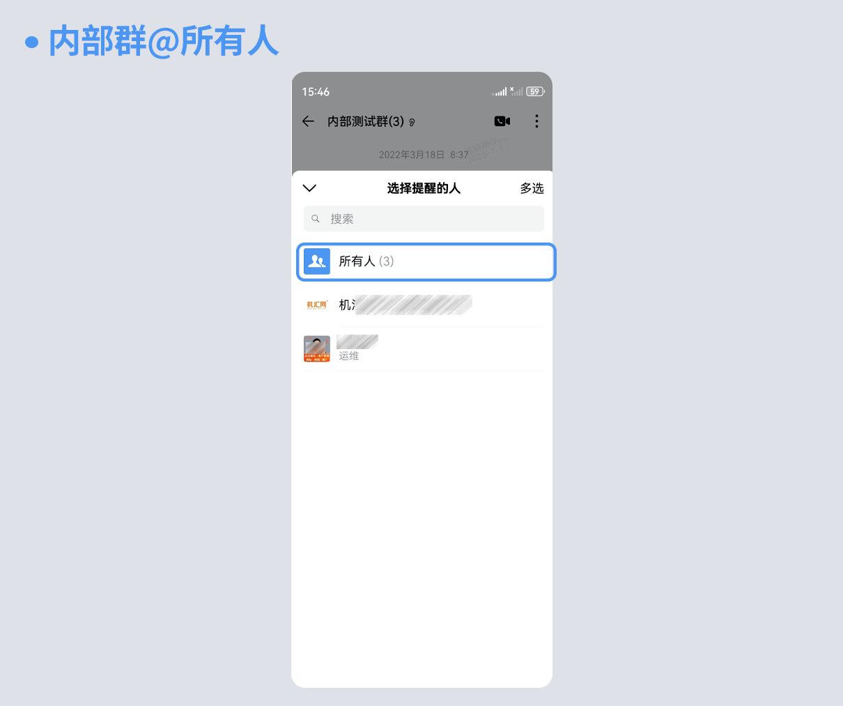 在内部群中,普通成员本身具备@所有人的权限,无需额外申请。直接按照上述方法操作即可。